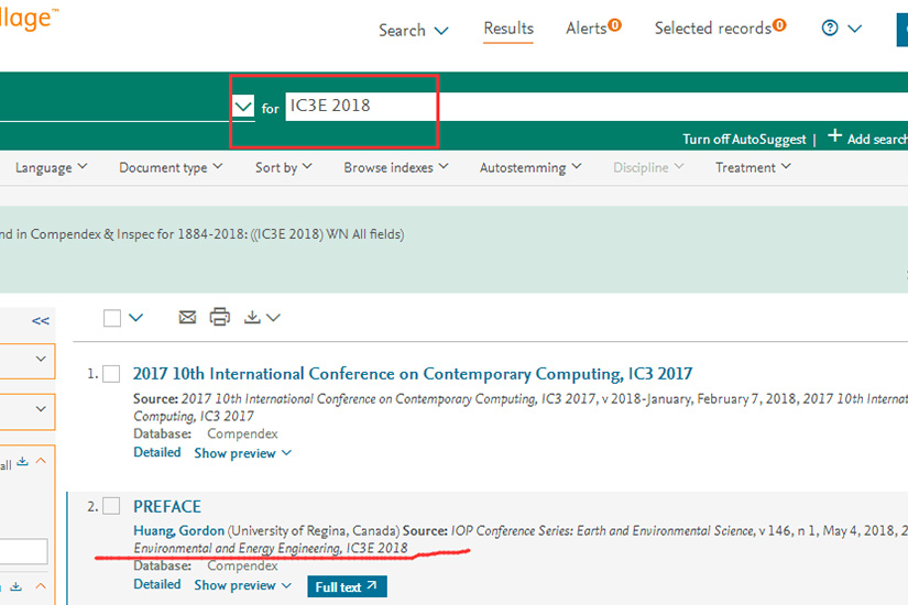 - 5) IC3E 2018会议论文集已成功收录于IOP conference series: Earth and Environmental Science(Volume 146),并已成功被EI核心及Scopus检索! 在线链接: https://iopscience.iop.org/issue/1755-1315/146/1
