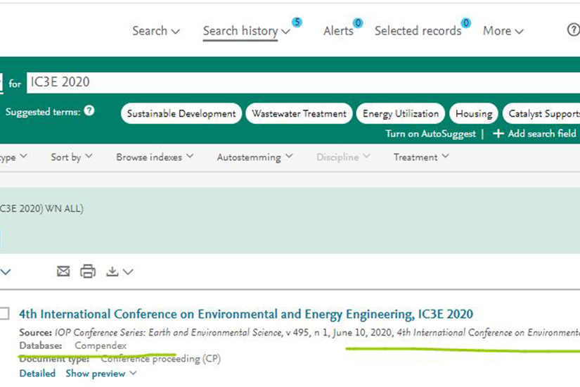 - 6) IC3E 2017会议论文集已成功收录于IOP conference series: Earth and Environmental Science (Volume 63),并已成功被EI核心及Scopus检索! 在线链接: https://iopscience.iop.org/issue/1755-1315/63/1